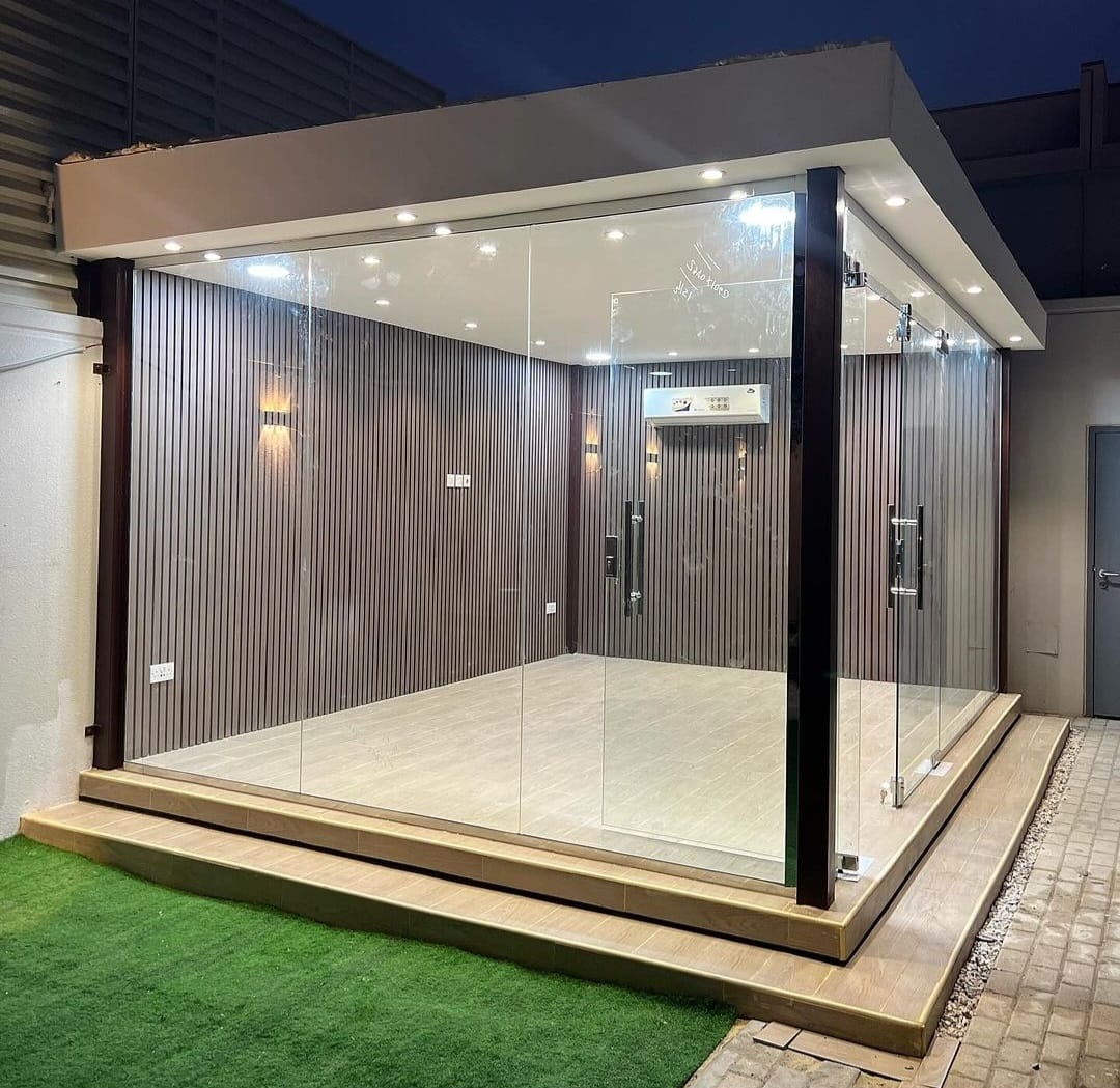 نقدّم في JANNAN VIP خدمات احترافية في تصميم وتنفيذ المجالس الزجاجية بجودة عالية تمنحك إطلالة فاخرة ومساحة مريحة للاستخدام طوال العام. نستخدم زجاجًا حراريًا عالي العزل مع هياكل متينة وتصاميم حديثة تناسب الحدائق، الأسطح، والفلل. فريقنا يوفّر تشطيبات دقيقة وحلولًا مبتكرة تجمع بين الجمال والعملية، ليصبح مجلسك الزجاجي نقطة فخامة في منزلك.